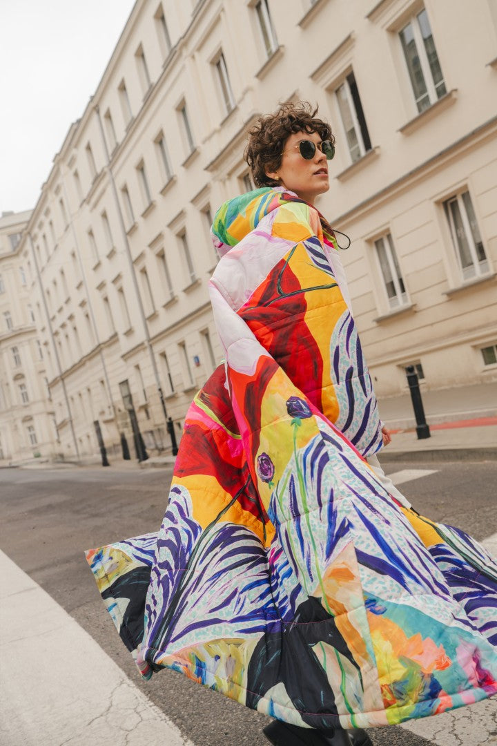 "Sittingsuits’ wearable blankets are a one-size-fits-all extra layer... With a series of artist collaborations resulting in bold stripes or colourful patterns, consider it a one-stop statement. You may never take it off."