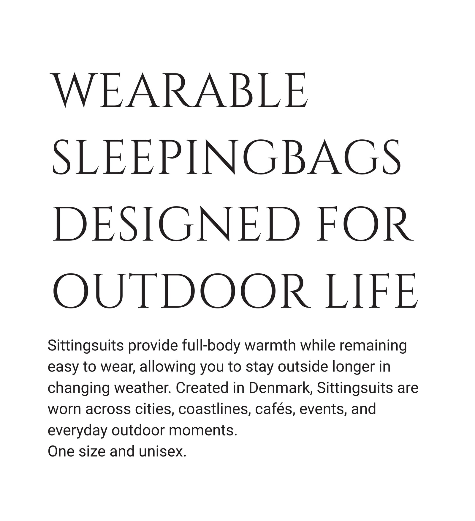 “The Sittingsuit is an ingenious, extra layer of protection from chill winds and rain that simply allows you to stay outside longer.”