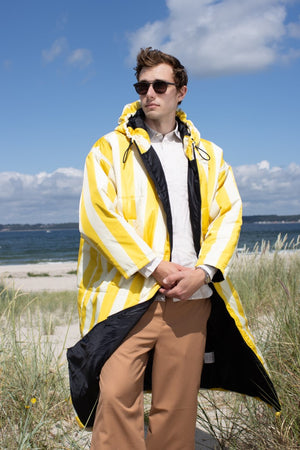 Kanten i hætten er udstyret med elastikker, der kan strammes ind efter behov. Den oversized hætte muliggør at have en frakke med hætte på indenunder, uden problemer. Således opnår du dobbelt beskyttelse imod vind og vejr!