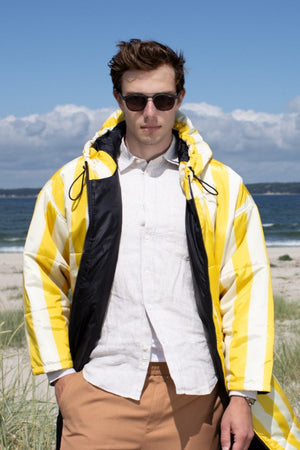 Det vandafvisende materiale er perfekt i let til moderat regn, og du kan uden problemer sætte dig på våde overflader, såsom bænke og græsplæner. Det er samtidig åndbart, og altså ikke at betragte som regntæt – derimod er den yderst vindtæt og du vil opleve at den giver læ og skærmer mod selv den kraftigste vind.