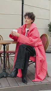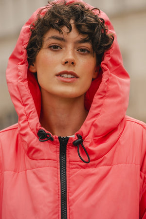 Kanten i hætten er udstyret med elastikker, der kan strammes ind efter behov. Den oversized hætte muliggør at have en frakke med hætte på indenunder, uden problemer. Således opnår du dobbelt beskyttelse imod vind og vejr!